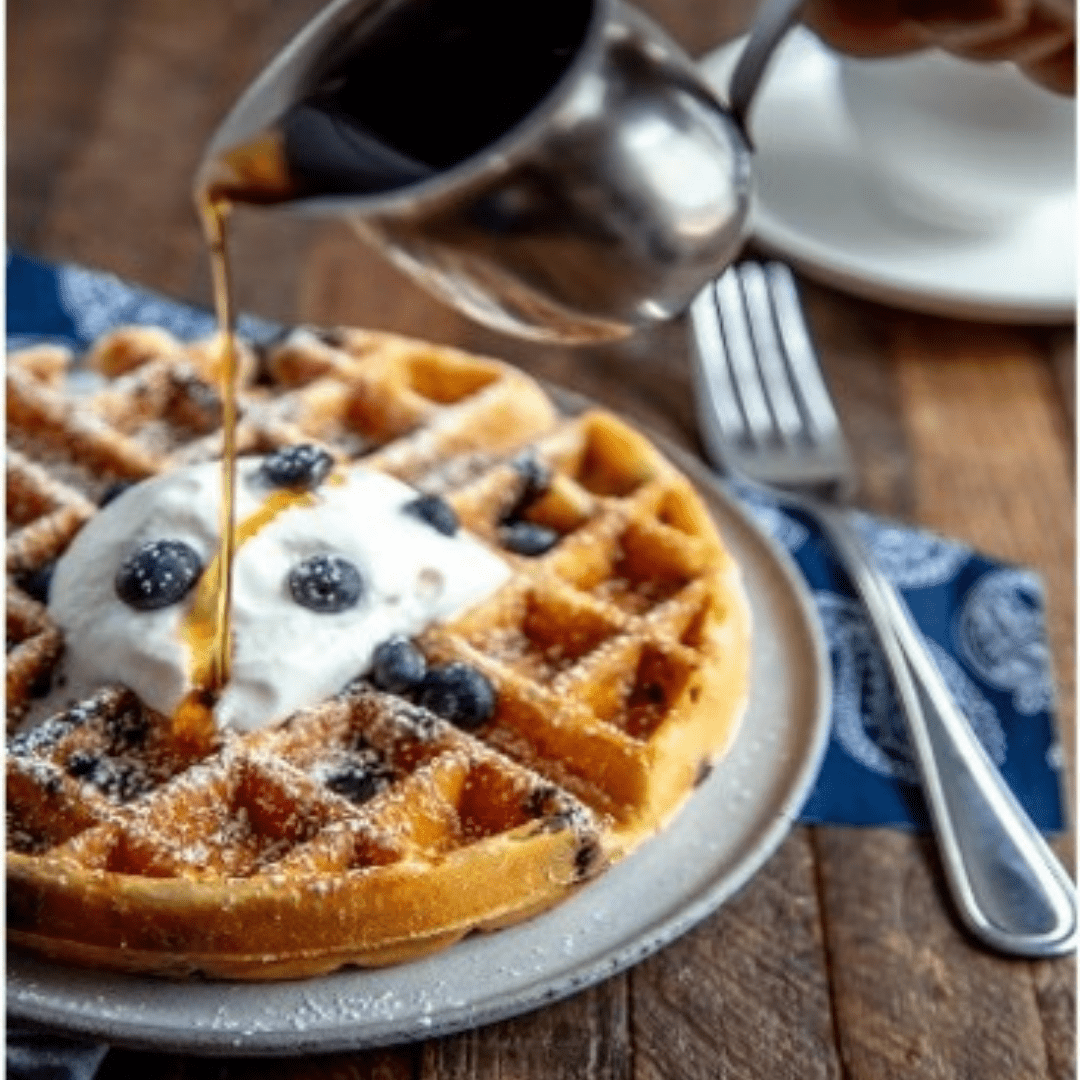 Crispy waffles with whipped cream